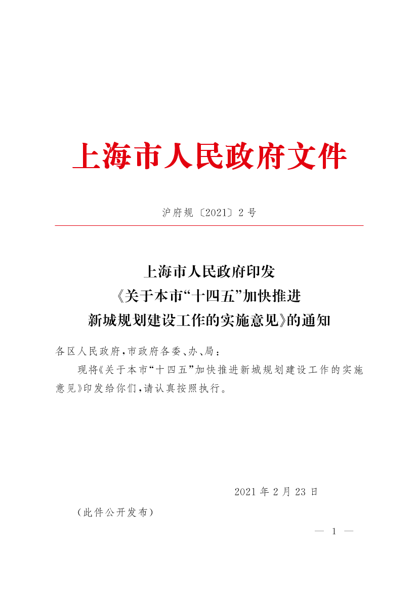 ??現(xiàn)將《關(guān)于本市“十四五”加快推進(jìn)新城規(guī)劃建設(shè)工作的實(shí)施意見(jiàn)》印發(fā)給你們,請(qǐng)認(rèn)真按照?qǐng)?zhí)行。