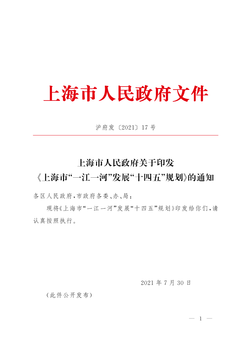 ??現(xiàn)將《上海市“一江一河”發(fā)展“十四五”規(guī)劃》印發(fā)給你們,請認真按照執(zhí)行。