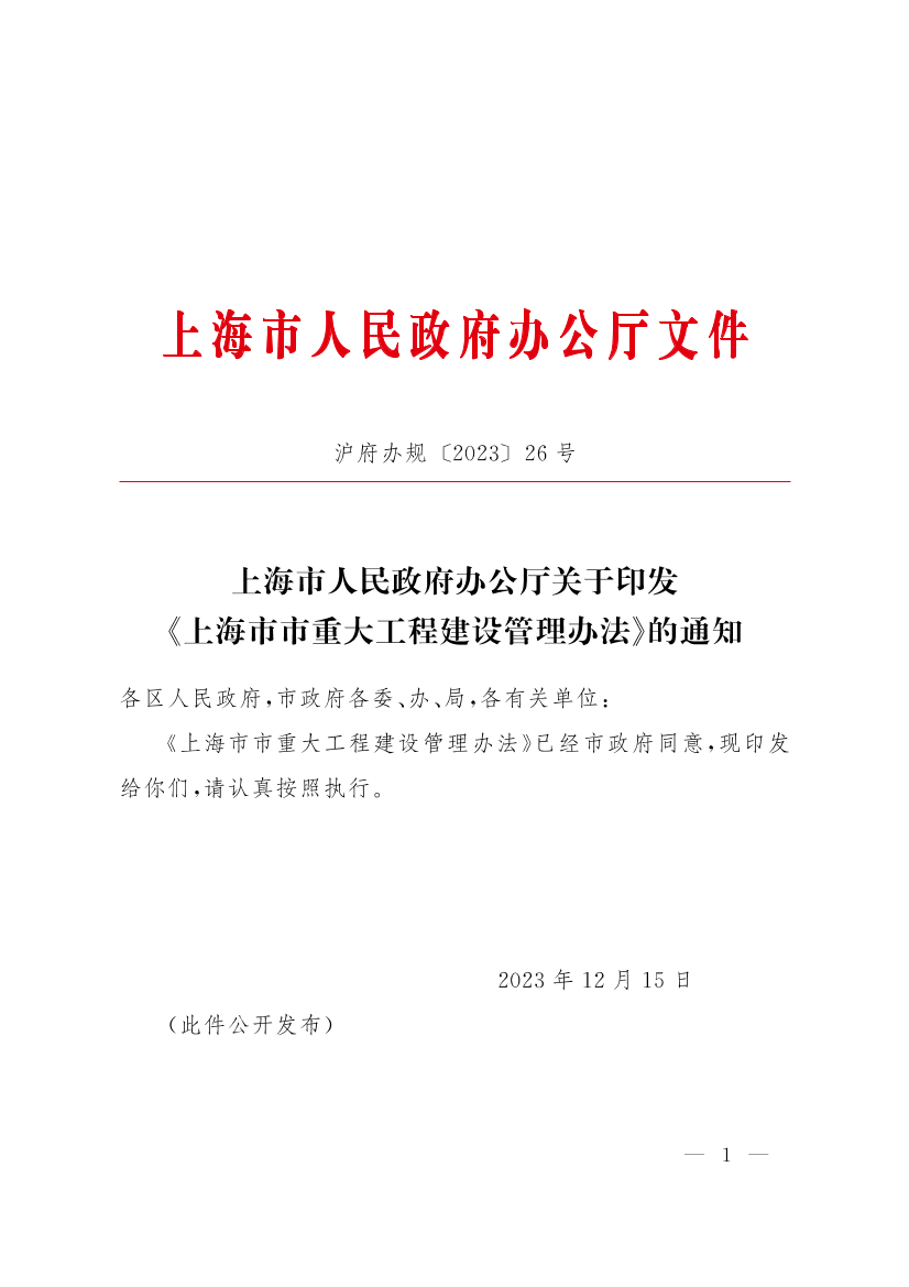 上海市人民政府辦公廳關(guān)于印發(fā)《上海市市重大工程建設(shè)管理辦法》的通知