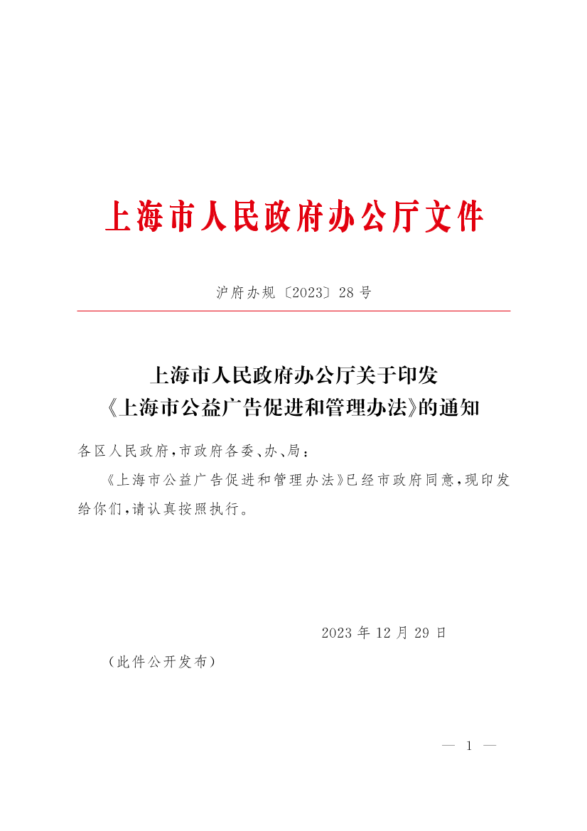 上海市人民政府辦公廳關于印發(fā)《上海市公益廣告促進和管理辦法》的通知