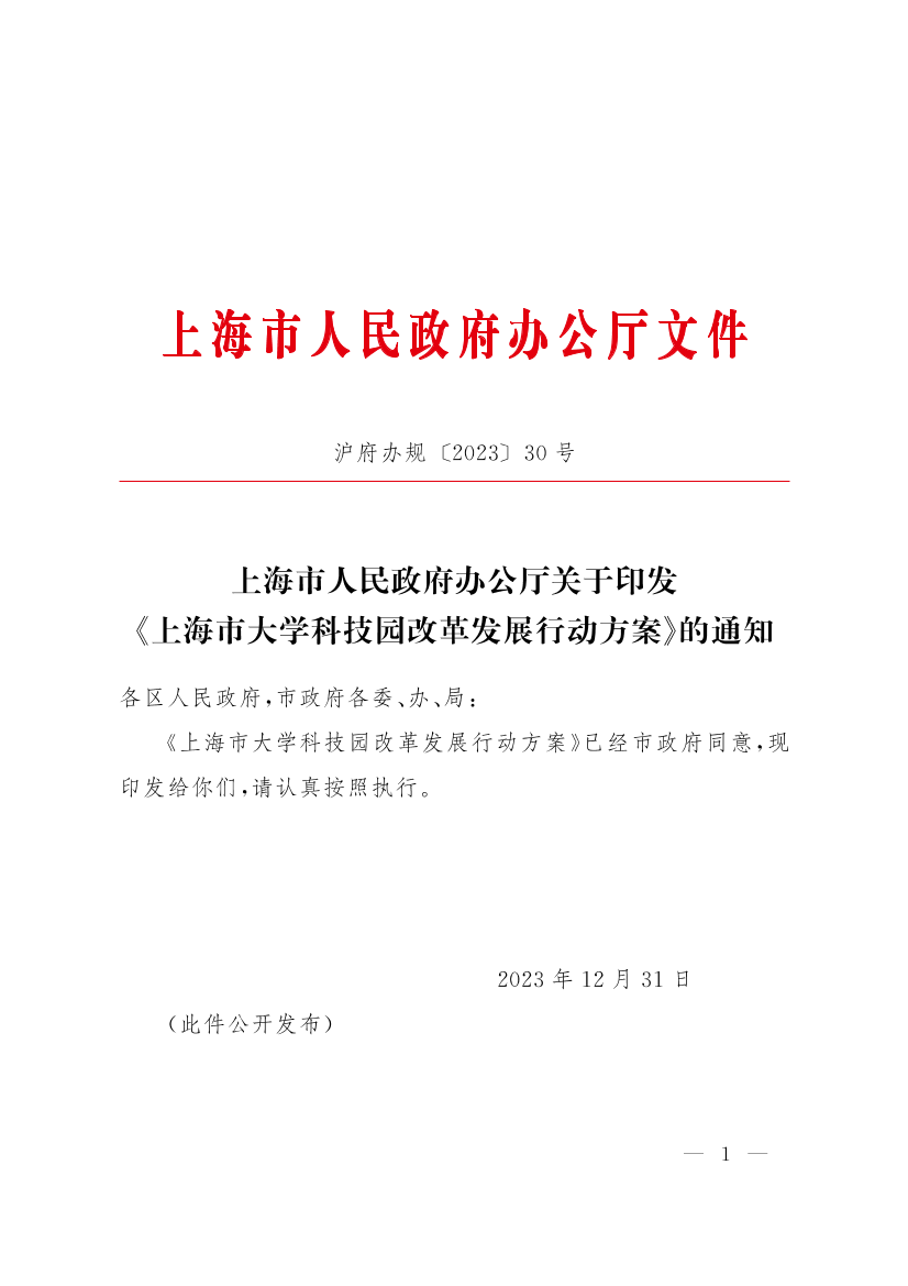 上海市人民政府辦公廳關于印發(fā)《上海市大學科技園改革發(fā)展行動方案》的通知