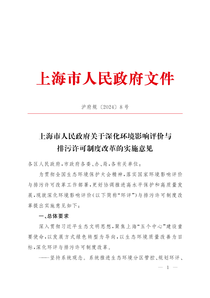上海市人民政府關于深化環(huán)境影響評價與排污許可制度改革的實施意見