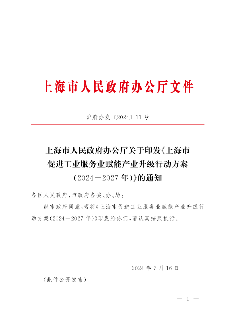上海市人民政府辦公廳關(guān)于印發(fā)《上海市促進(jìn)工業(yè)服務(wù)業(yè)賦能產(chǎn)業(yè)升級(jí)行動(dòng)方案(2024-2027年)》的通知