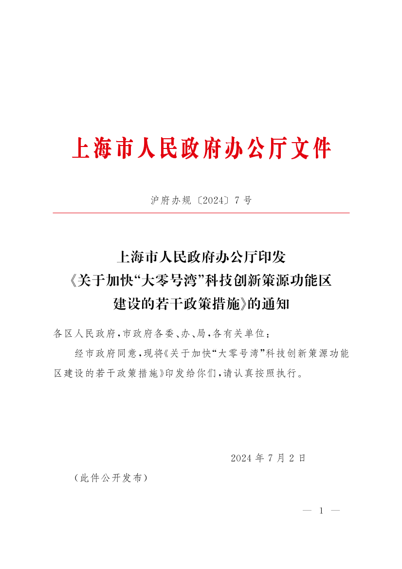 上海市人民政府辦公廳印發(fā)《關(guān)于加快“大零號(hào)灣”科技創(chuàng)新策源功能區(qū)建設(shè)的若干政策措施》的通知