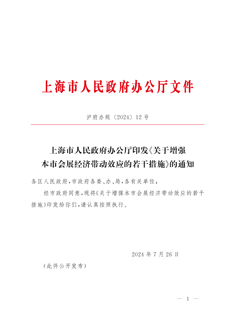 上海市人民政府辦公廳印發(fā)《關(guān)于增強本市會展經(jīng)濟帶動效應(yīng)的若干措施》的通知