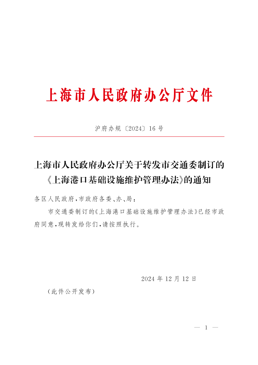??市交通委制訂的《上海港口基礎(chǔ)設(shè)施維護(hù)管理辦法》已經(jīng)市政府同意,現(xiàn)轉(zhuǎn)發(fā)給你們,請(qǐng)按照?qǐng)?zhí)行。