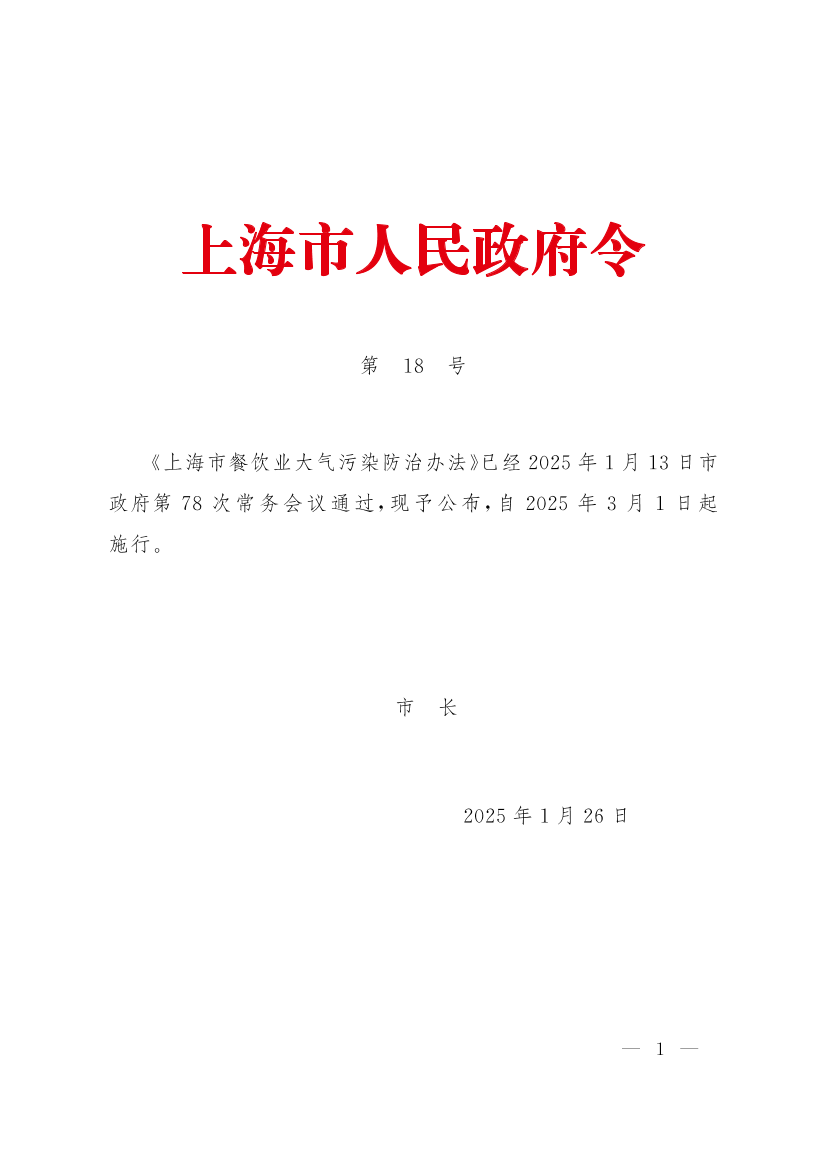 《上海市餐飲業(yè)大氣污染防治辦法》(滬府令18號(hào))