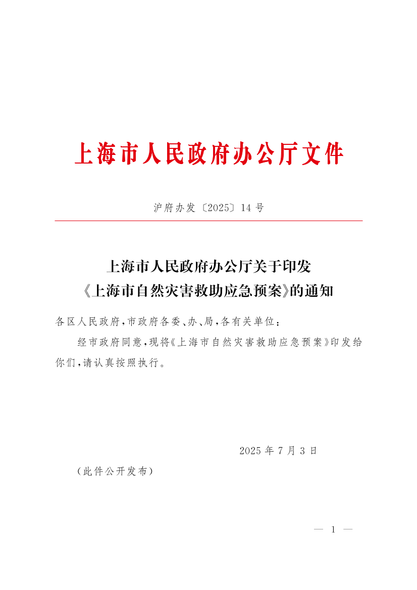 上海市人民政府辦公廳關于印發(fā)《上海市自然災害救助應急預案》的通知