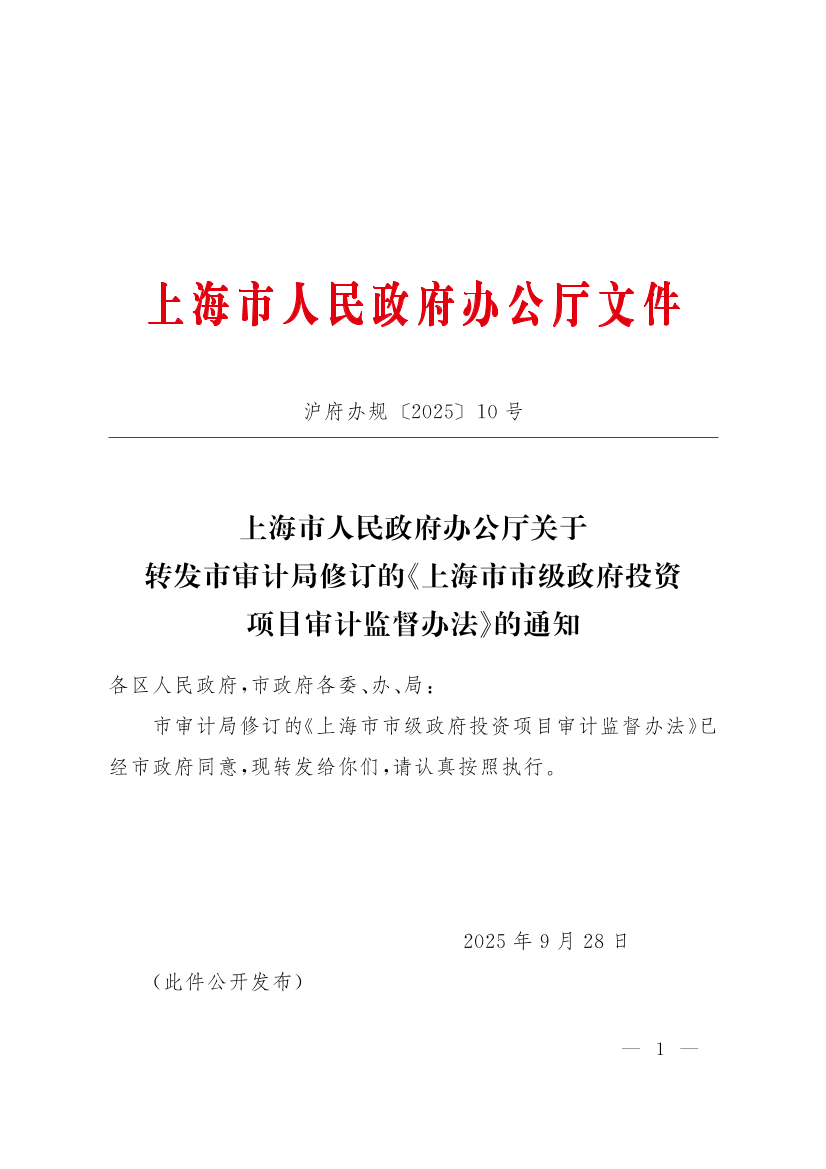 上海市人民政府辦公廳關(guān)于轉(zhuǎn)發(fā)市審計局修訂的《上海市市級政府投資項(xiàng)目審計監(jiān)督辦法》的通知
