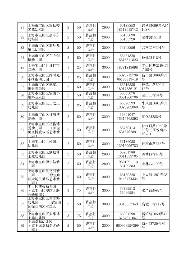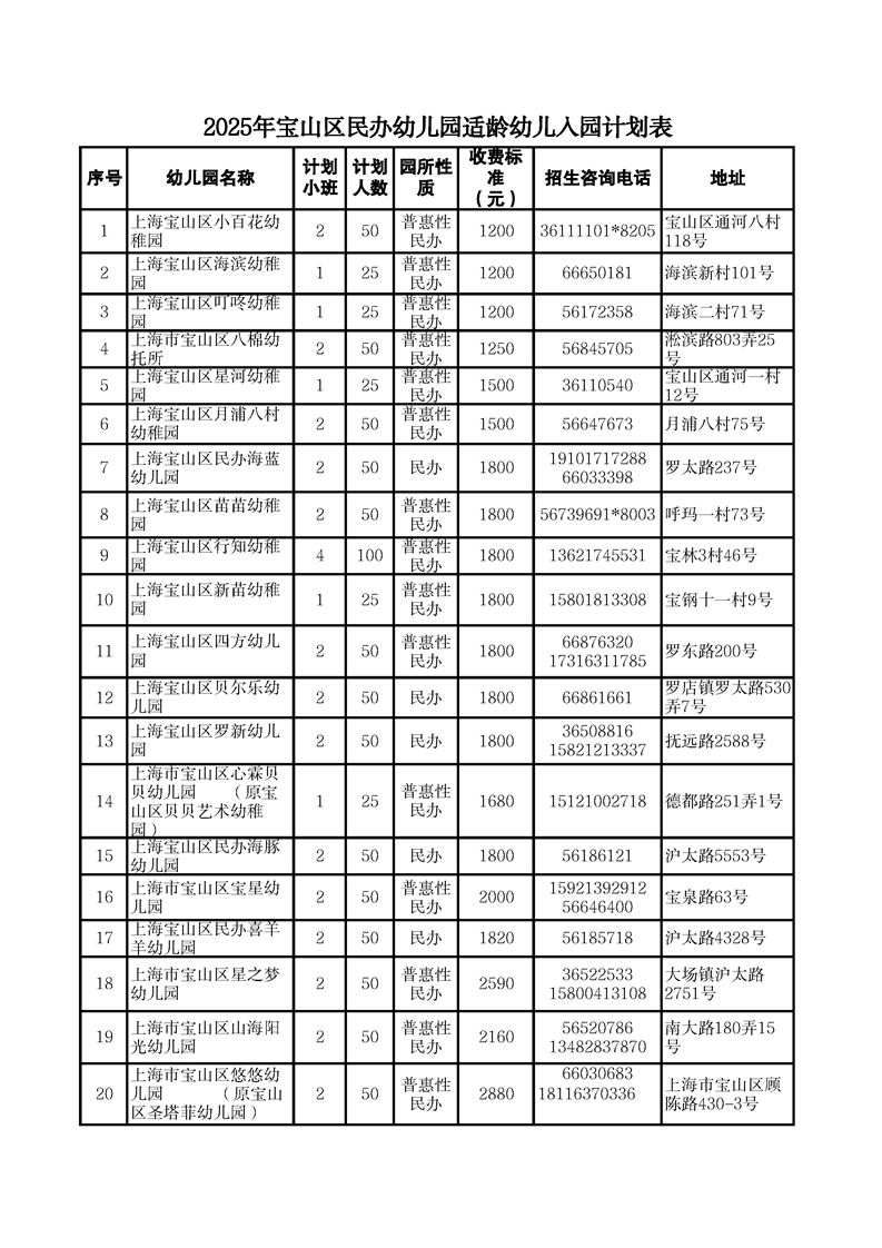 2025年寶山區(qū)民辦幼兒園適齡幼兒入園計(jì)劃表