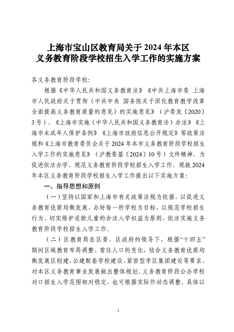 寶山區(qū)教育局關(guān)于2024年本區(qū)義務(wù)教育階段學(xué)校招生入學(xué)工作的實(shí)施方案