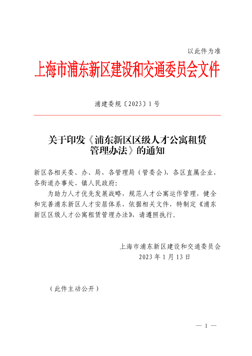 浦東新區(qū)區(qū)級人才公寓租賃管理辦法