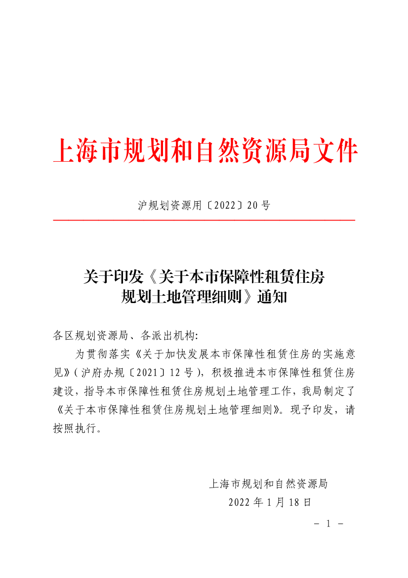 關(guān)于印發(fā)《關(guān)于本市保障性租賃住房規(guī)劃土地管理細(xì)則》通知