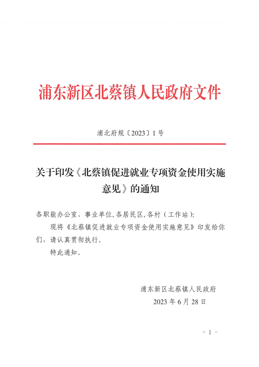 關(guān)于印發(fā)《北蔡鎮(zhèn)促進就業(yè)專項資金使用實施意見》的通知