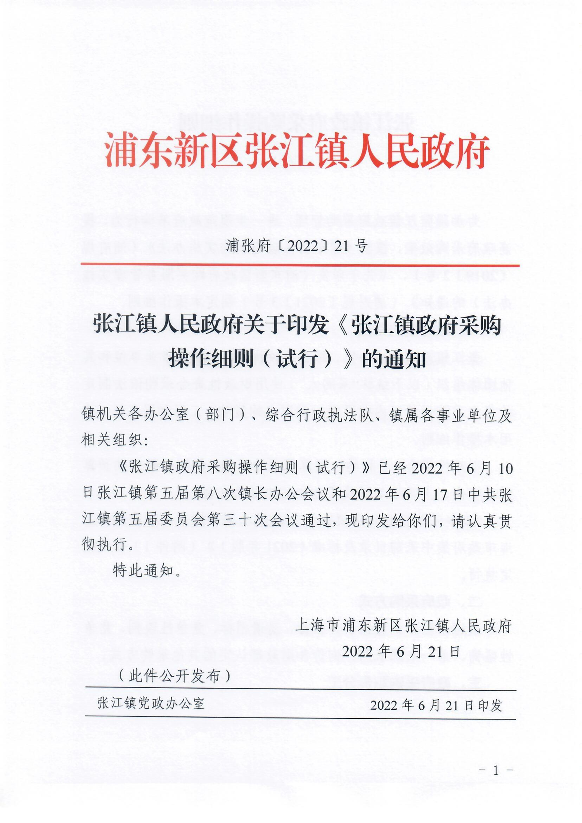 ??《張江鎮(zhèn)政府采購操作細(xì)則(試行)》已經(jīng)2022年6月10日張江鎮(zhèn)第五屆第八次鎮(zhèn)長辦公會議和2022年6月17日中共張江鎮(zhèn)第五屆委員會第三十次會議通過,現(xiàn)印發(fā)給你們,請認(rèn)真貫徹執(zhí)行。