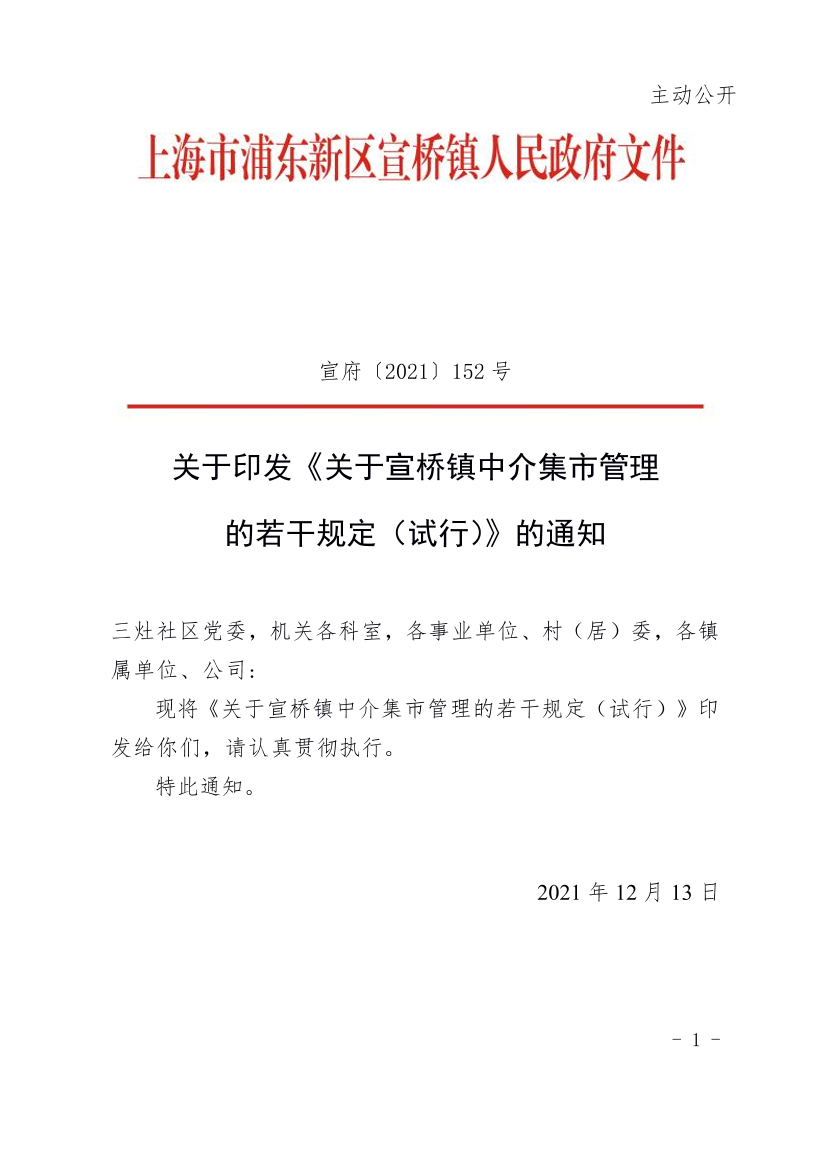 關(guān)于印發(fā)《關(guān)于宣橋鎮(zhèn)中介集市管理的若干規(guī)定(試行)》的通知