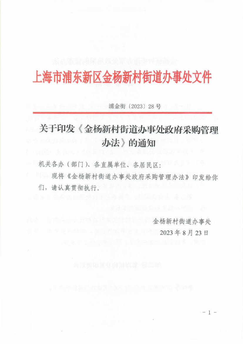 ??現(xiàn)將《金楊新村街道辦事處政府采購管理辦法》印發(fā)給你們,請認(rèn)真貫徹執(zhí)行。