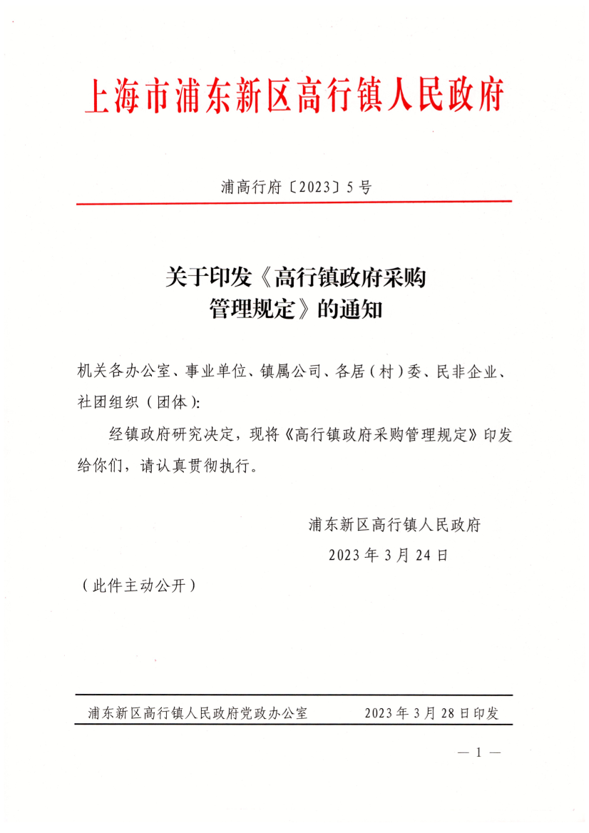 關于印發(fā)《高行鎮(zhèn)政府采購管理規(guī)定》的通知