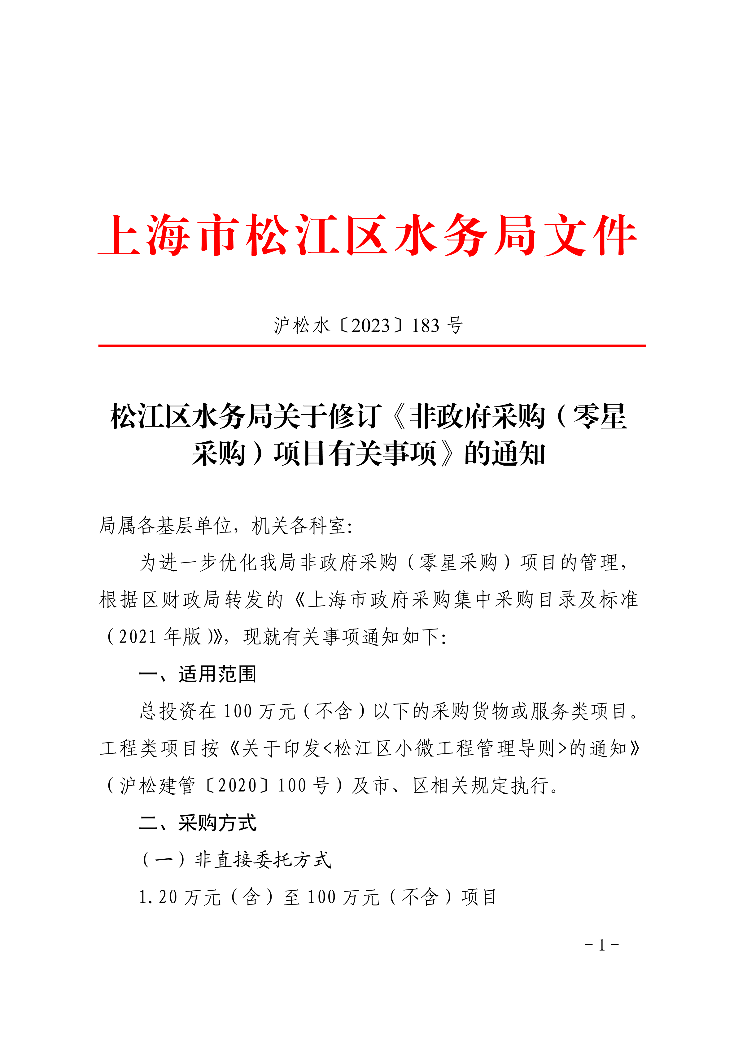 松江區(qū)水務(wù)局關(guān)于修訂《非政府采購(gòu)(零星采購(gòu))項(xiàng)目有關(guān)事項(xiàng)》的通知