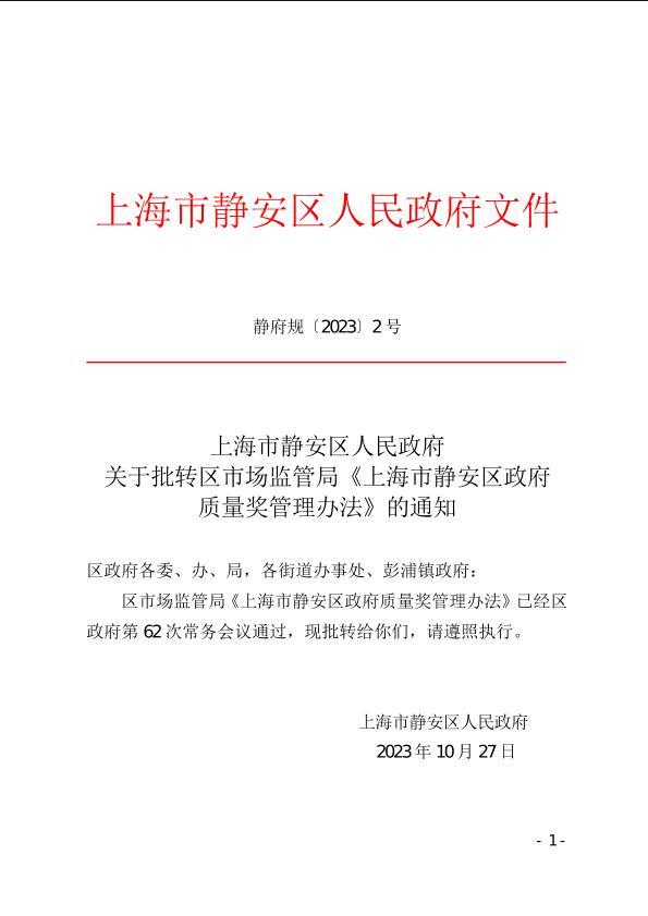 上海市靜安區(qū)政府質(zhì)量獎(jiǎng)管理辦法