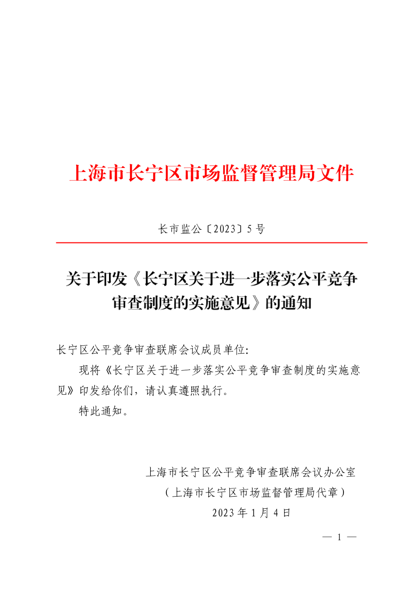 ??上海市長(zhǎng)寧區(qū)公平競(jìng)爭(zhēng)審查聯(lián)席會(huì)議辦公室