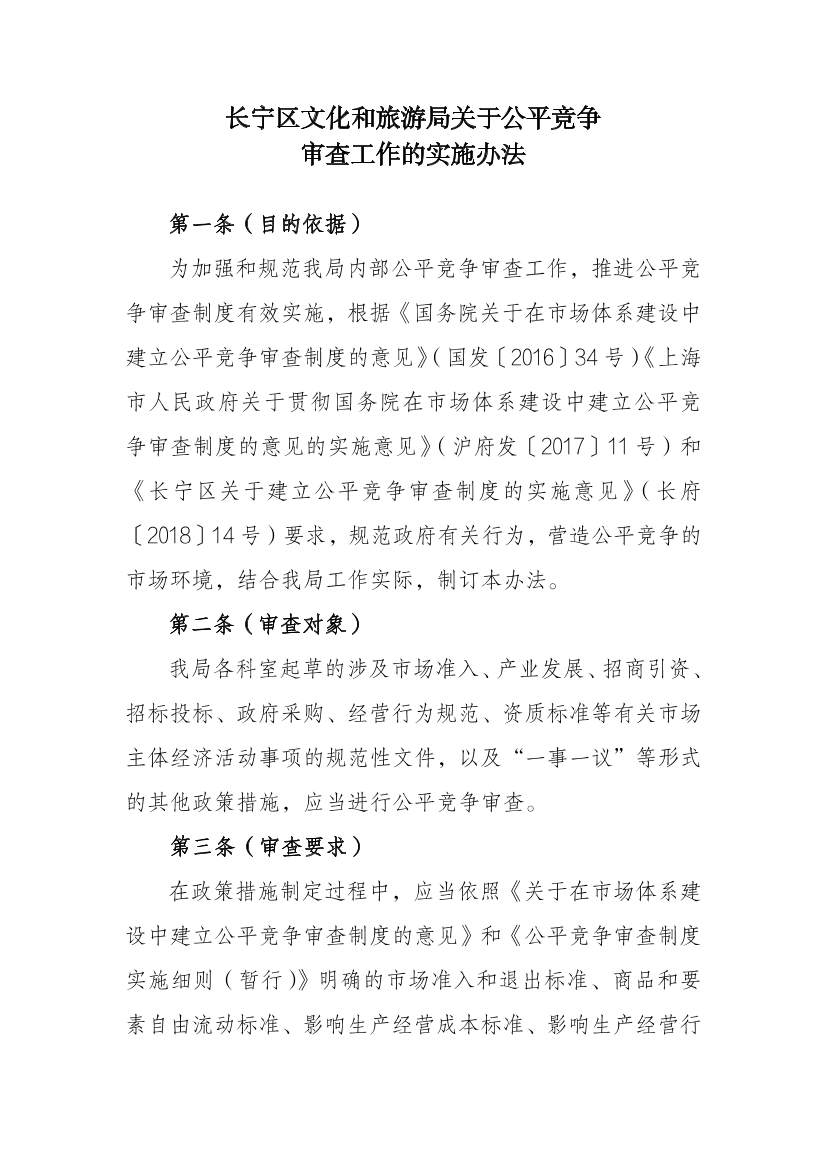 長寧區(qū)文化和旅游局關(guān)于公平競爭審查工作的實施辦法