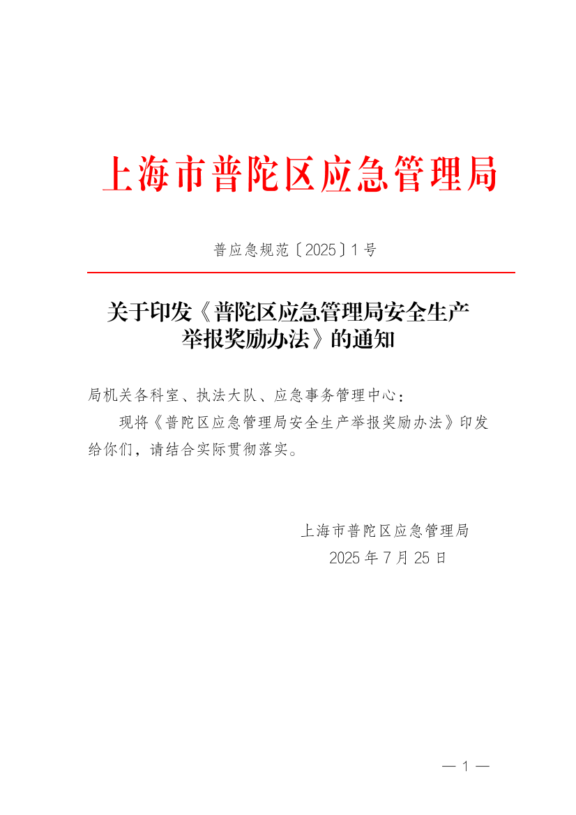 ??現(xiàn)將《普陀區(qū)應(yīng)急管理局安全生產(chǎn)舉報獎勵辦法》印發(fā)給你們,請結(jié)合實際貫徹落實。