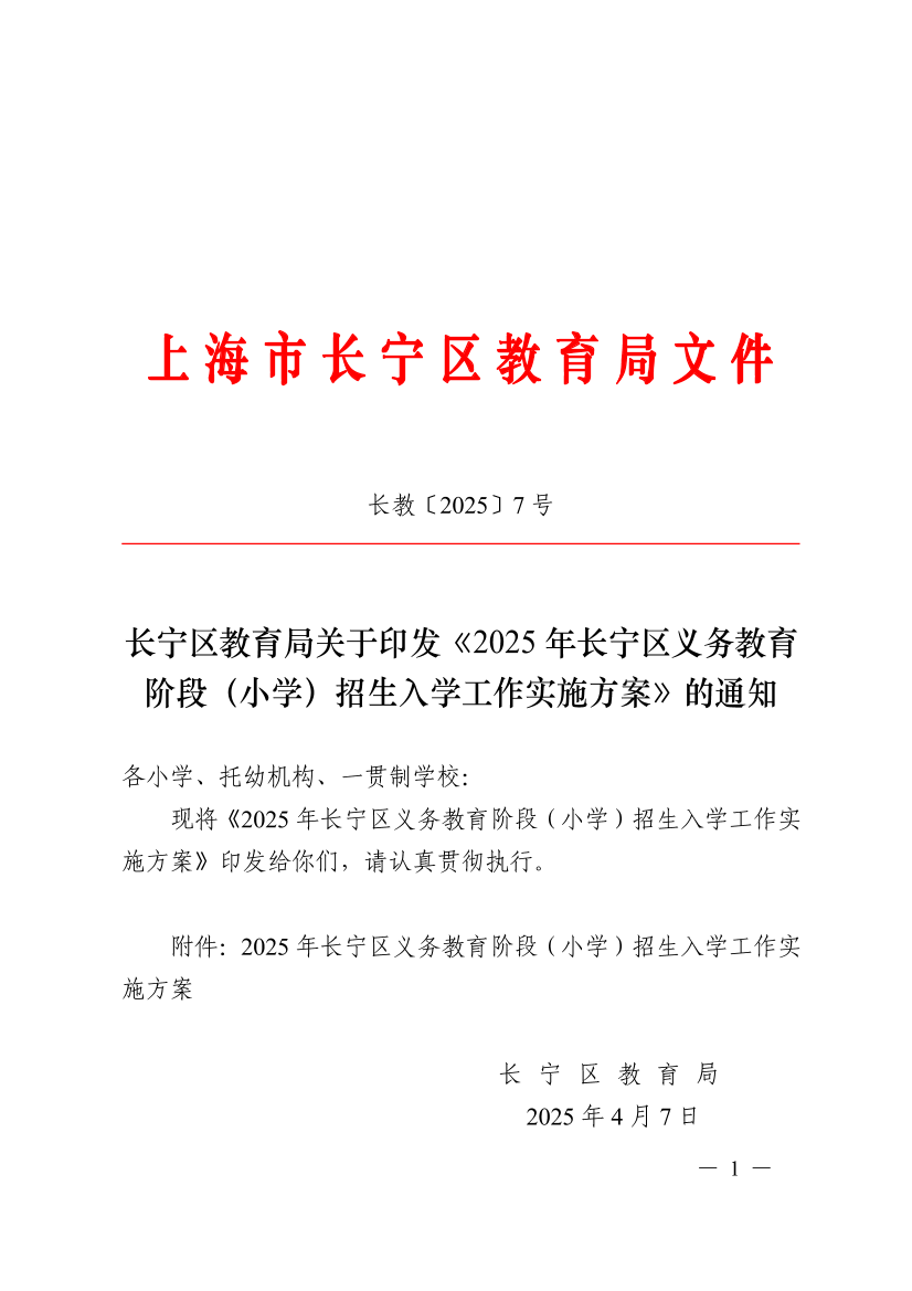 ??現(xiàn)將《2025年長寧區(qū)義務(wù)教育階段(小學(xué))招生入學(xué)工作實(shí)施方案》印發(fā)給你們,請認(rèn)真貫徹執(zhí)行。