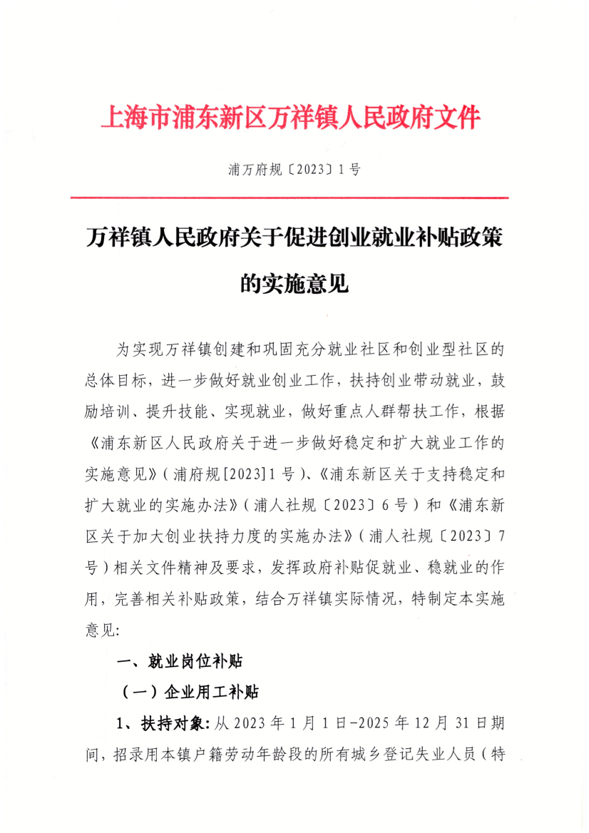 ??為實(shí)現(xiàn)萬祥鎮(zhèn)創(chuàng)建和鞏固充分就業(yè)社區(qū)和創(chuàng)業(yè)型社區(qū)的總體目標(biāo),進(jìn)一步做好就業(yè)創(chuàng)業(yè)工作,扶持創(chuàng)業(yè)帶動就業(yè),鼓勵培訓(xùn)、提升技能、實(shí)現(xiàn)就業(yè),做好重點(diǎn)人群幫扶工作,根據(jù)《浦東新區(qū)人民政府關(guān)于進(jìn)一步做好穩(wěn)定和擴(kuò)大就業(yè)工作的實(shí)施意見》(浦府規(guī)[2023]1號)、《浦東新區(qū)關(guān)于支持穩(wěn)定和擴(kuò)大就業(yè)的實(shí)施辦法》(浦人社規(guī)〔2023〕6號)和《浦東新區(qū)關(guān)于加大創(chuàng)業(yè)扶持力度的實(shí)施辦法》(浦人社規(guī)〔2023〕7號)相關(guān)文件精神及要求,發(fā)揮政府補(bǔ)貼促就業(yè)、穩(wěn)就業(yè)的作用,完善相關(guān)補(bǔ)貼政策,結(jié)合萬祥鎮(zhèn)實(shí)際情況,特制定本實(shí)施意見: