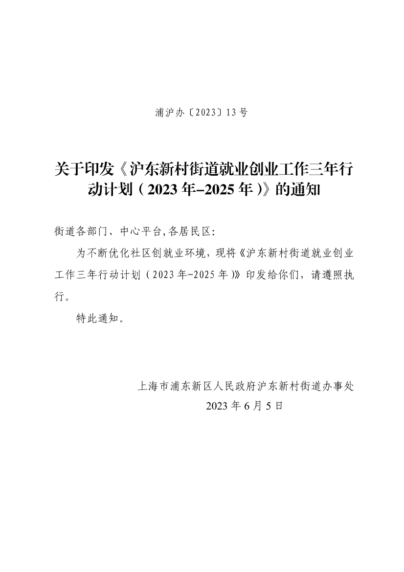 關(guān)于印發(fā)《滬東新村街道就業(yè)創(chuàng)業(yè)工作三年行動計劃(2023年-2025年)》的通知