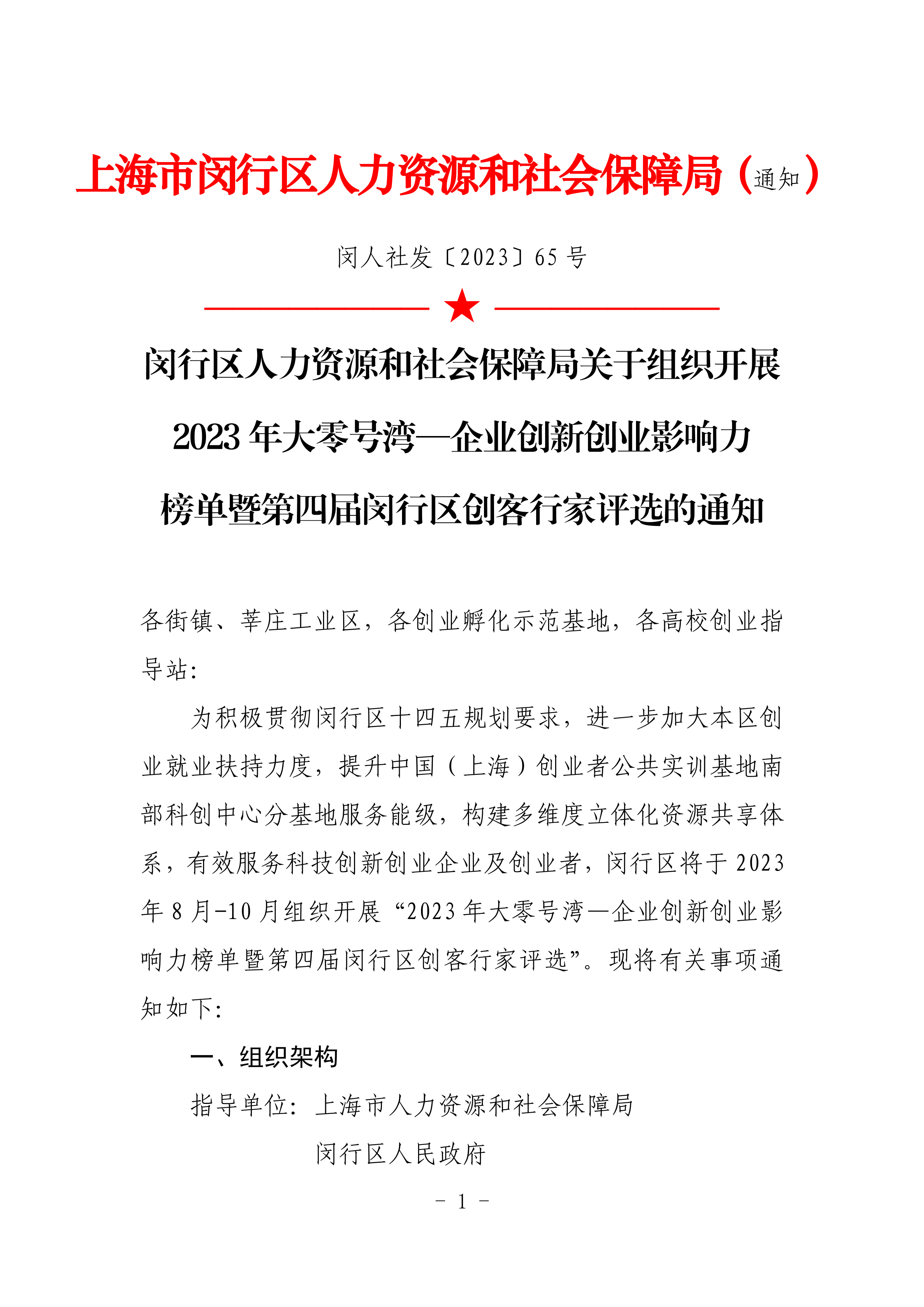 關(guān)于組織開展2023年大零號(hào)灣—企業(yè)創(chuàng)新創(chuàng)業(yè)影響力榜單暨第四屆閔行區(qū)創(chuàng)客行家評(píng)選的通知
