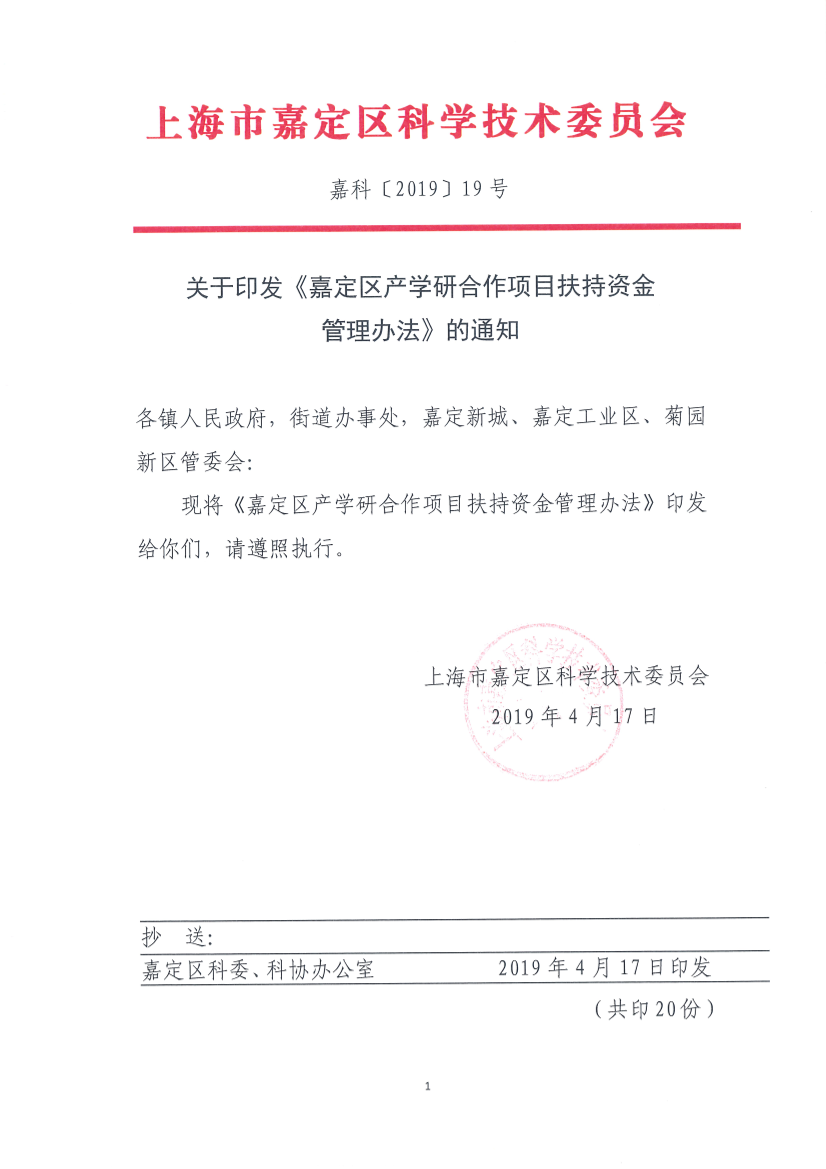 關(guān)于印發(fā)《嘉定區(qū)產(chǎn)學(xué)研合作項目扶持資金管理辦法》的通知