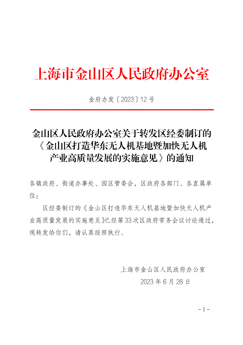 金山區(qū)打造華東無人機(jī)基地暨加快無人機(jī)產(chǎn)業(yè)高質(zhì)量發(fā)展的實(shí)施意見