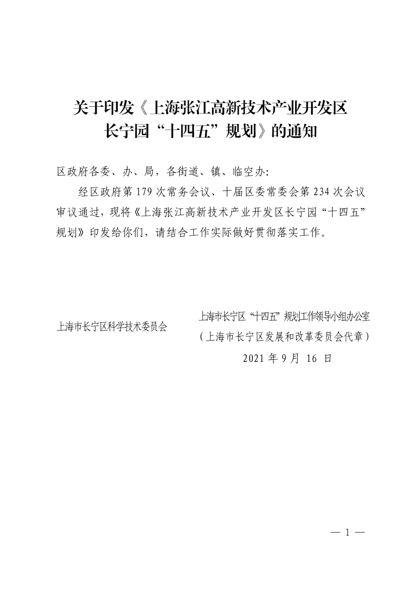 關(guān)于印發(fā)《上海張江高新技術(shù)產(chǎn)業(yè)開發(fā)區(qū) 長寧園“十四五”規(guī)劃》的通知