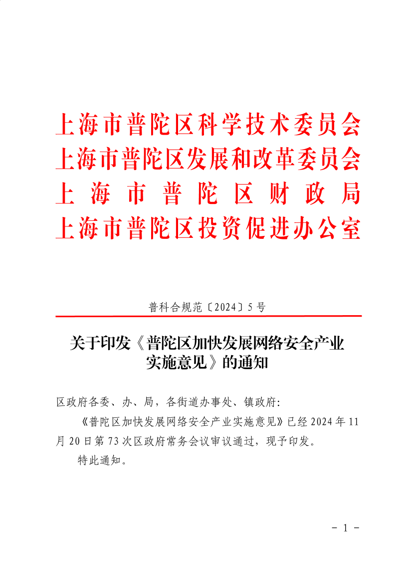 普陀區(qū)加快發(fā)展網(wǎng)絡(luò)安全產(chǎn)業(yè)實(shí)施意見