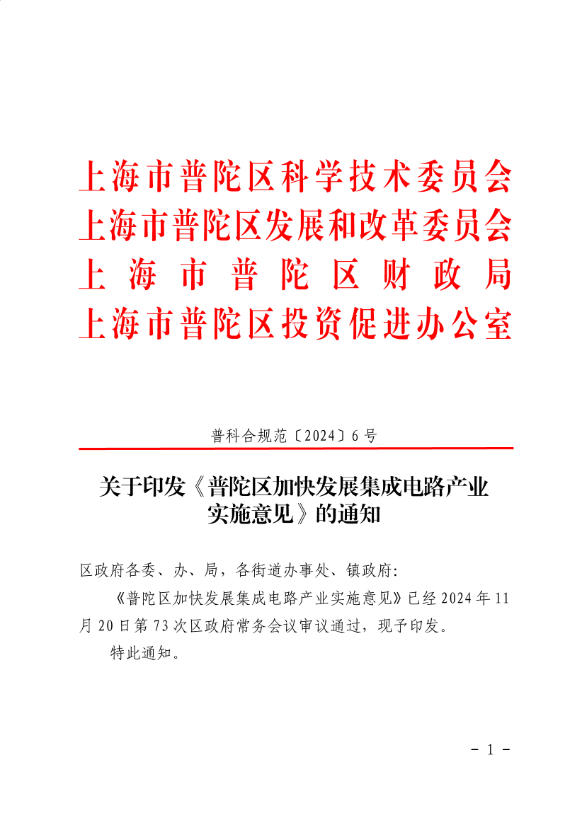??《普陀區(qū)加快發(fā)展集成電路產(chǎn)業(yè)實(shí)施意見》已經(jīng)2024年11月20日第73次區(qū)政府常務(wù)會(huì)議審議通過,現(xiàn)予印發(fā)。