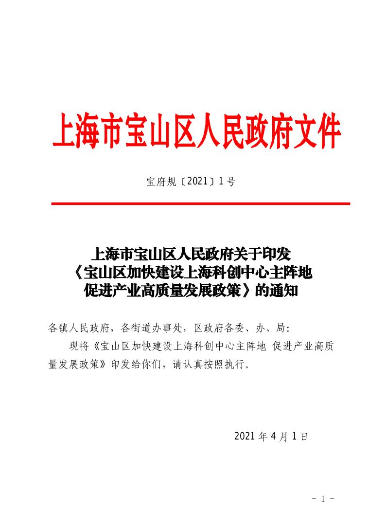 印發(fā)日期:2021-04-01 寶府規(guī)〔2021〕1號