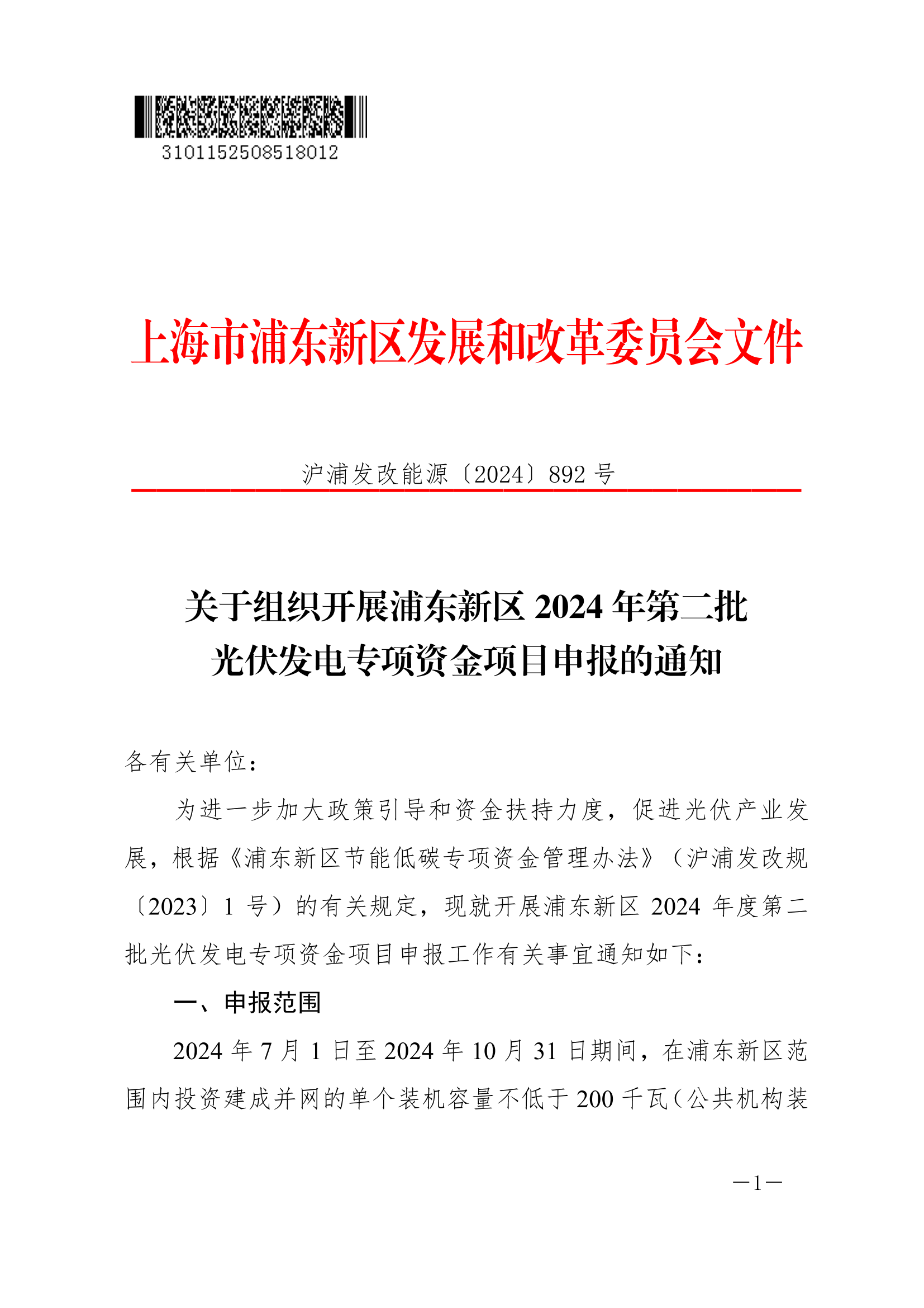 ??為進一步加大政策引導和資金扶持力度,促進光伏產(chǎn)業(yè)發(fā)展,根據(jù)《浦東新區(qū)節(jié)能低碳專項資金管理辦法》(滬浦發(fā)改規(guī)〔2023〕1號)的有關(guān)規(guī)定,現(xiàn)就開展浦東新區(qū)2024年度第二批光伏發(fā)電專項資金項目申報工作有關(guān)事宜通知如下: