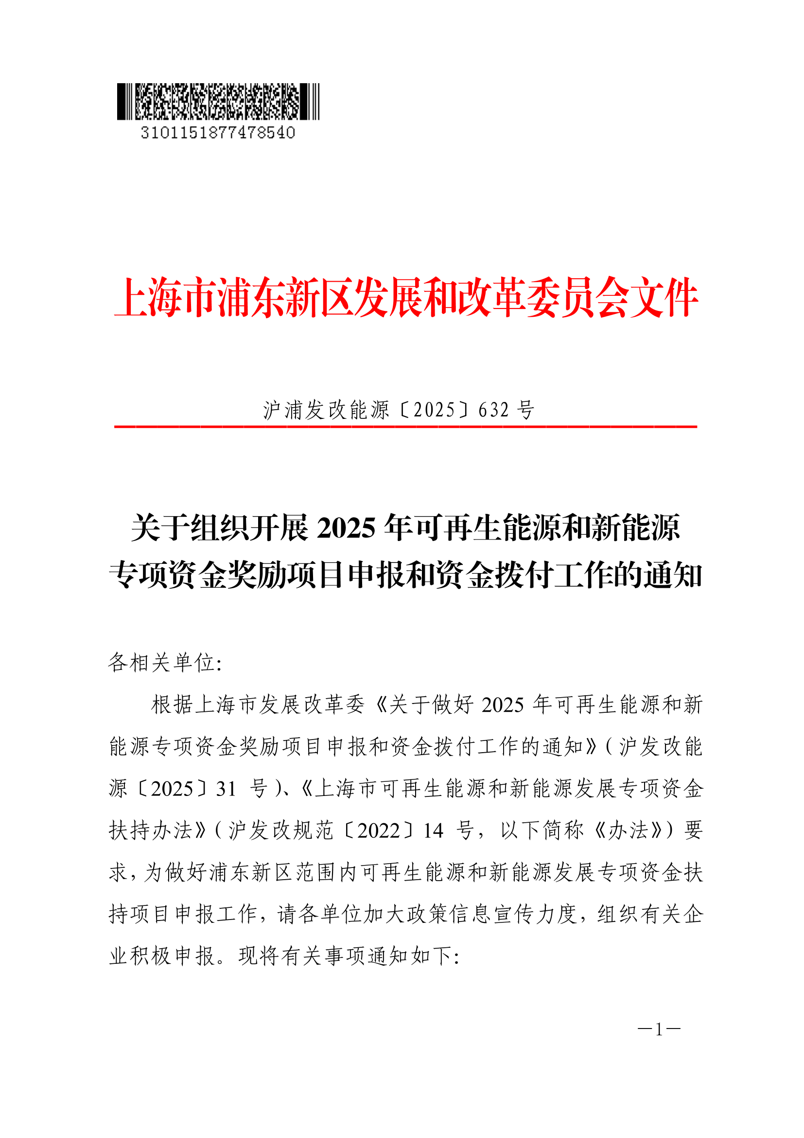 ??根據(jù)上海市發(fā)展改革委《關(guān)于做好2025年可再生能源和新能源專項資金獎勵項目申報和資金撥付工作的通知》(滬發(fā)改能源〔2025〕31號)、《上海市可再生能源和新能源發(fā)展專項資金扶持辦法》(滬發(fā)改規(guī)范〔2022〕14號,以下簡稱《辦法》)要求,為做好浦東新區(qū)范圍內(nèi)可再生能源和新能源發(fā)展專項資金扶持項目申報工作,請各單位加大政策信息宣傳力度,組織有關(guān)企業(yè)積極申報?,F(xiàn)將有關(guān)事項通知如下: