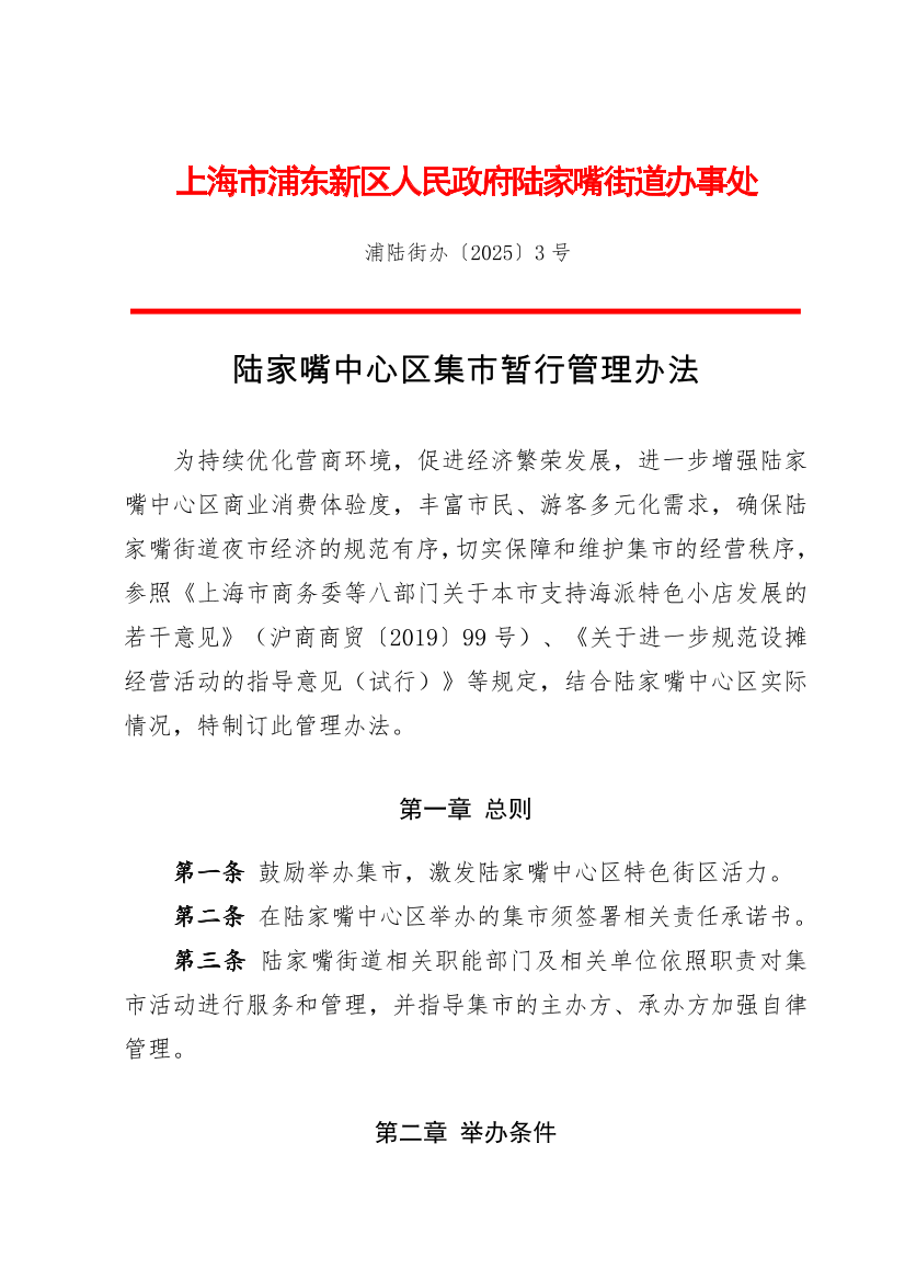 陸家嘴中心區(qū)集市暫行管理辦法