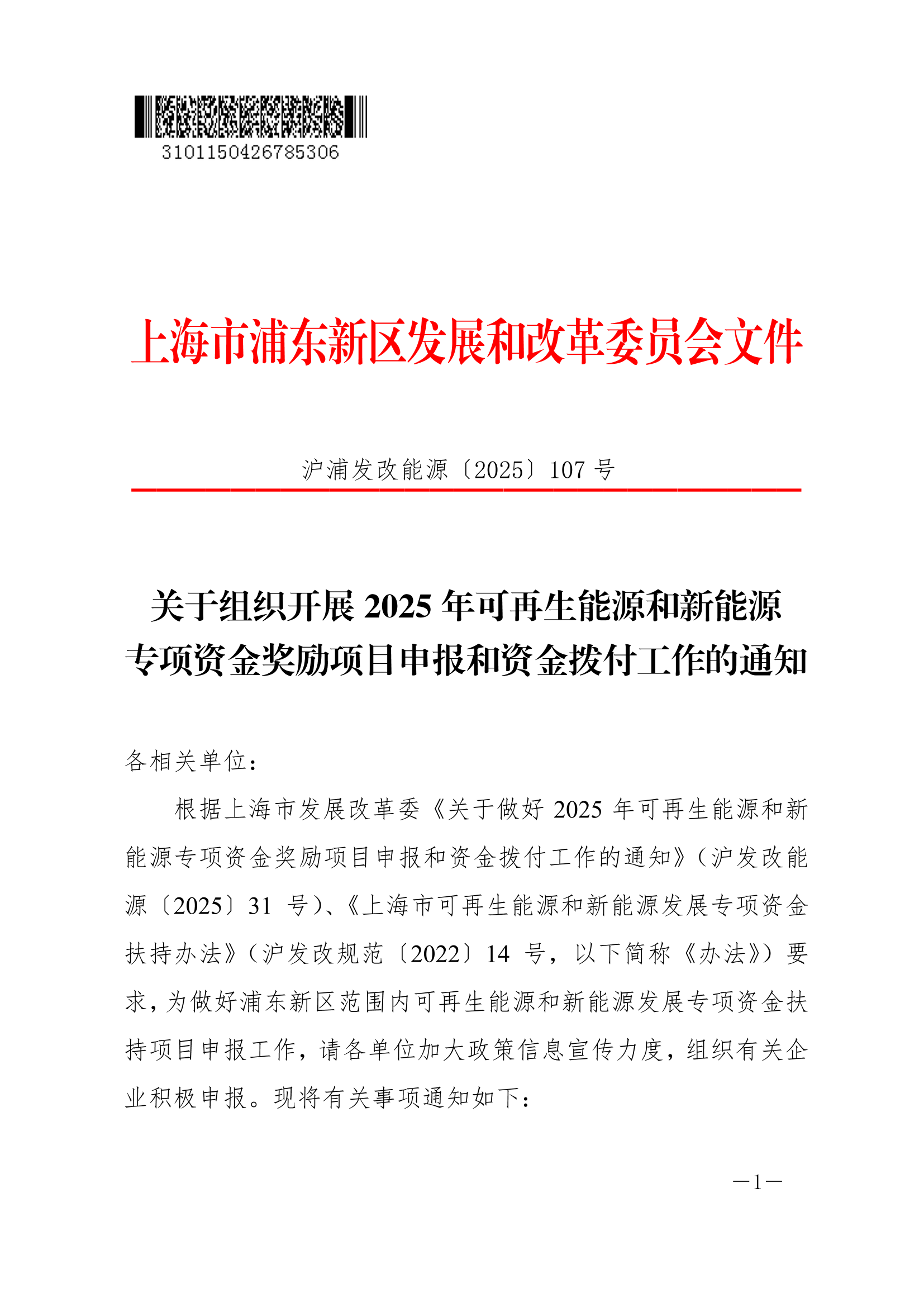 ??根據上海市發(fā)展改革委《關于做好2025年可再生能源和新能源專項資金獎勵項目申報和資金撥付工作的通知》(滬發(fā)改能源〔2025〕31號)、《上海市可再生能源和新能源發(fā)展專項資金扶持辦法》(滬發(fā)改規(guī)范〔2022〕14號,以下簡稱《辦法》)要求,為做好浦東新區(qū)范圍內可再生能源和新能源發(fā)展專項資金扶持項目申報工作,請各單位加大政策信息宣傳力度,組織有關企業(yè)積極申報。現(xiàn)將有關事項通知如下: