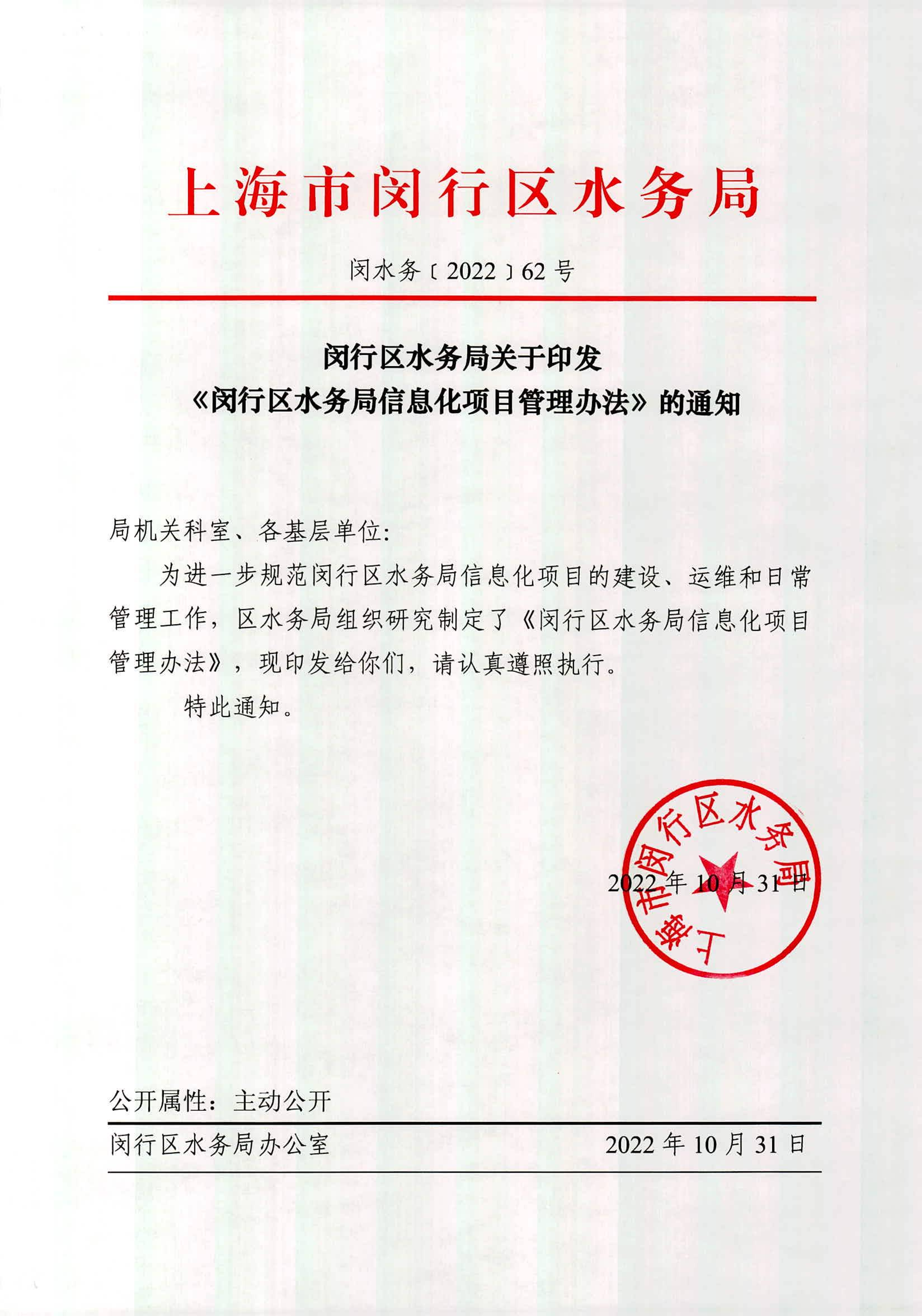 閔行區(qū)水務(wù)局關(guān)于印發(fā)《閔行區(qū)水務(wù)局信息化項(xiàng)目管理辦法》的通知