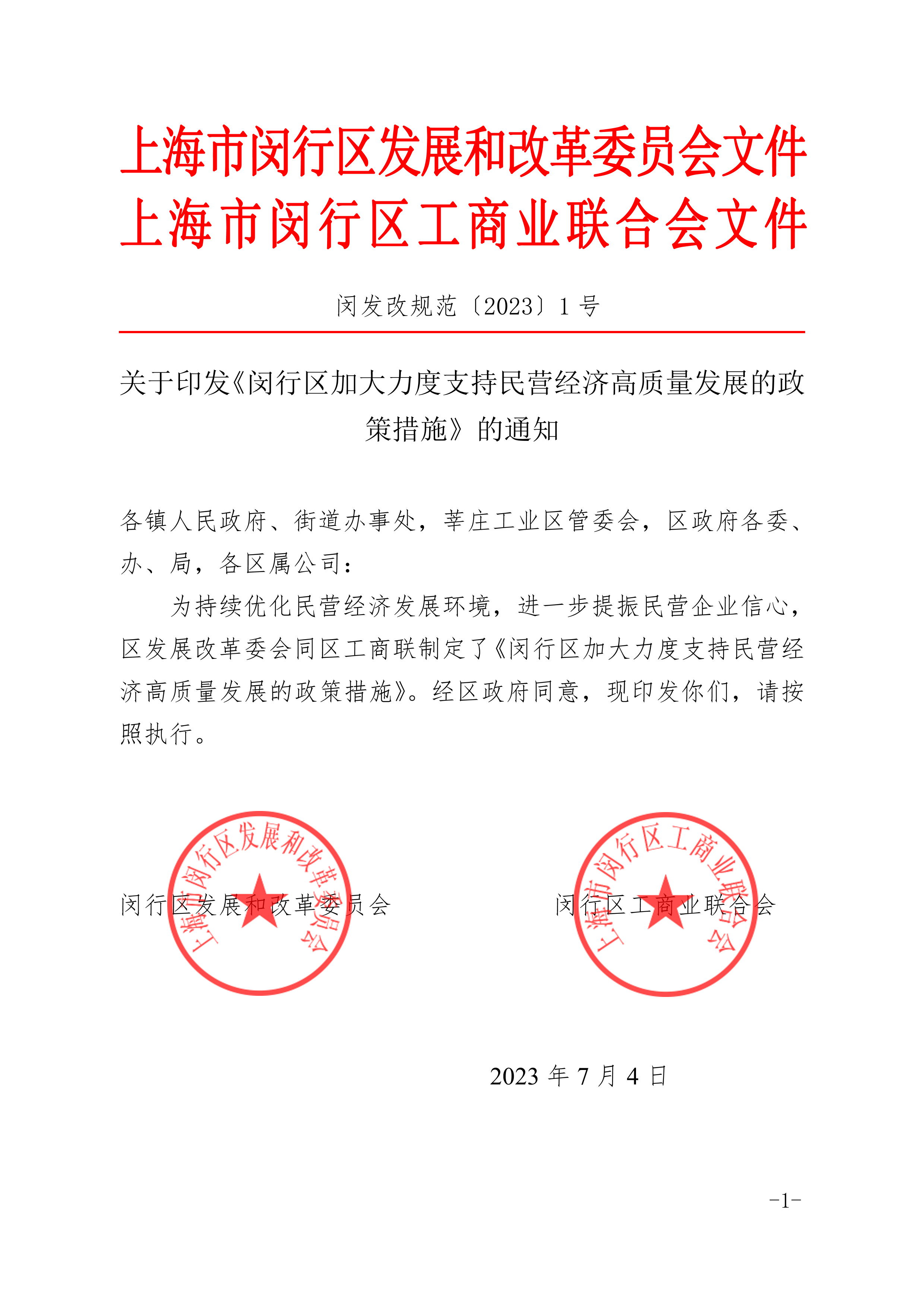 ??為持續(xù)優(yōu)化民營經(jīng)濟發(fā)展環(huán)境,進一步提振民營企業(yè)信心,區(qū)發(fā)展改革委會同區(qū)工商聯(lián)制定了《閔行區(qū)加大力度支持民營經(jīng)濟高質(zhì)量發(fā)展的政策措施》。經(jīng)區(qū)政府同意,現(xiàn)印發(fā)你們,請按照執(zhí)行。