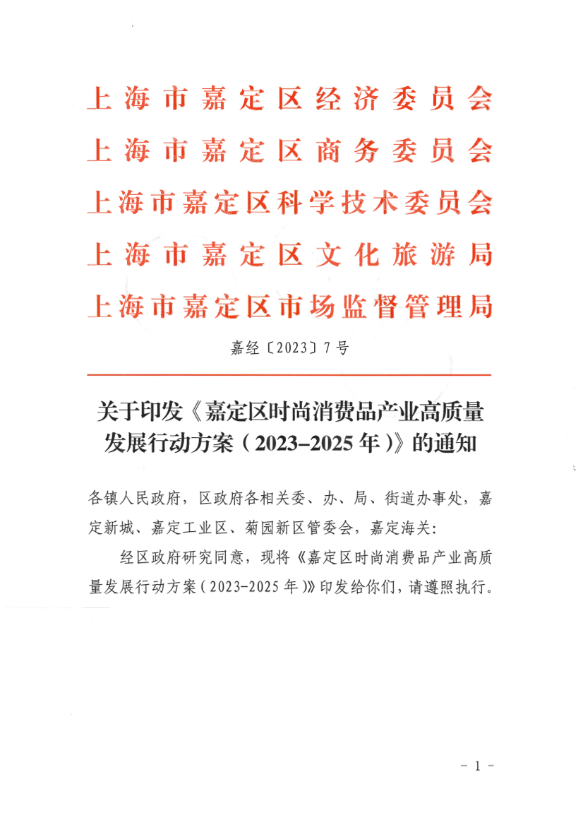 關(guān)于印發(fā)《嘉定區(qū)時(shí)尚消費(fèi)品產(chǎn)業(yè)高質(zhì)量發(fā)展行動(dòng)方案(2023-2025年)》的通知