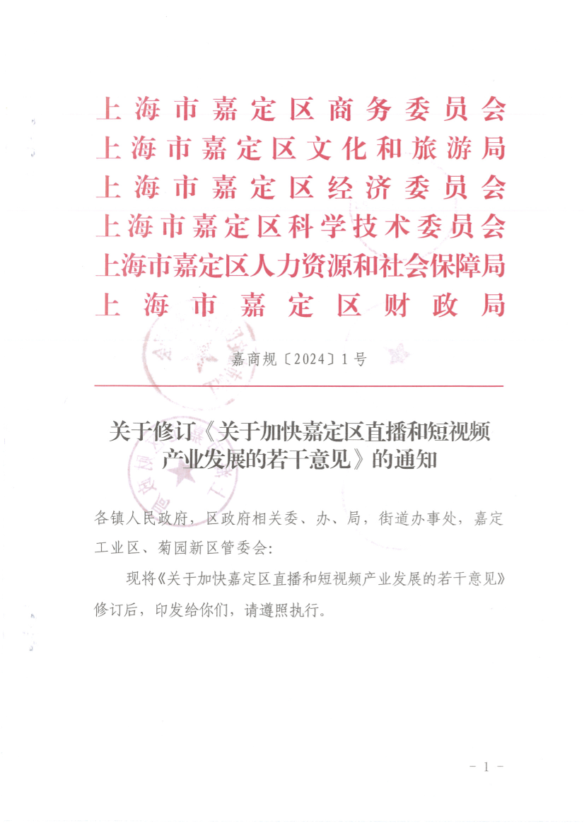 關(guān)于加快嘉定區(qū)直播和短視頻產(chǎn)業(yè)發(fā)展的若干意見