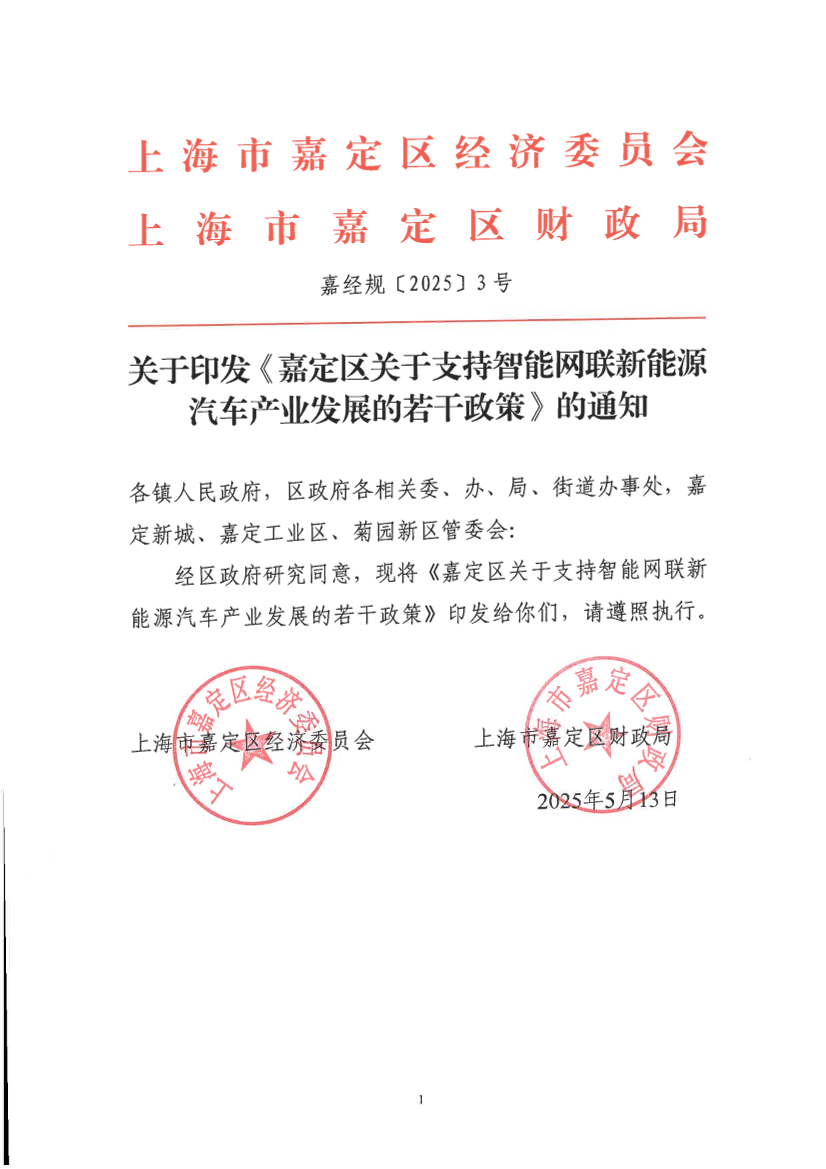 ??經(jīng)區(qū)政府研究同意,現(xiàn)將《嘉定區(qū)關(guān)于支持智能網(wǎng)聯(lián)新能源汽車產(chǎn)業(yè)發(fā)展的若干政策》印發(fā)給你們,請(qǐng)遵照?qǐng)?zhí)行。