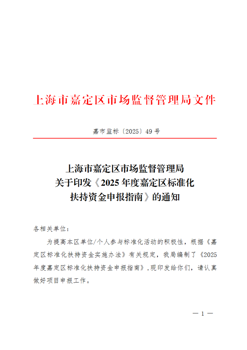 ??為提高本區(qū)單位/個人參與標準化活動的積極性,根據(jù)《嘉定區(qū)標準化扶持資金實施辦法》有關(guān)規(guī)定,我局編制了《2025年度嘉定區(qū)標準化扶持資金申報指南》,現(xiàn)印發(fā)給你們,請認真做好項目申報工作。