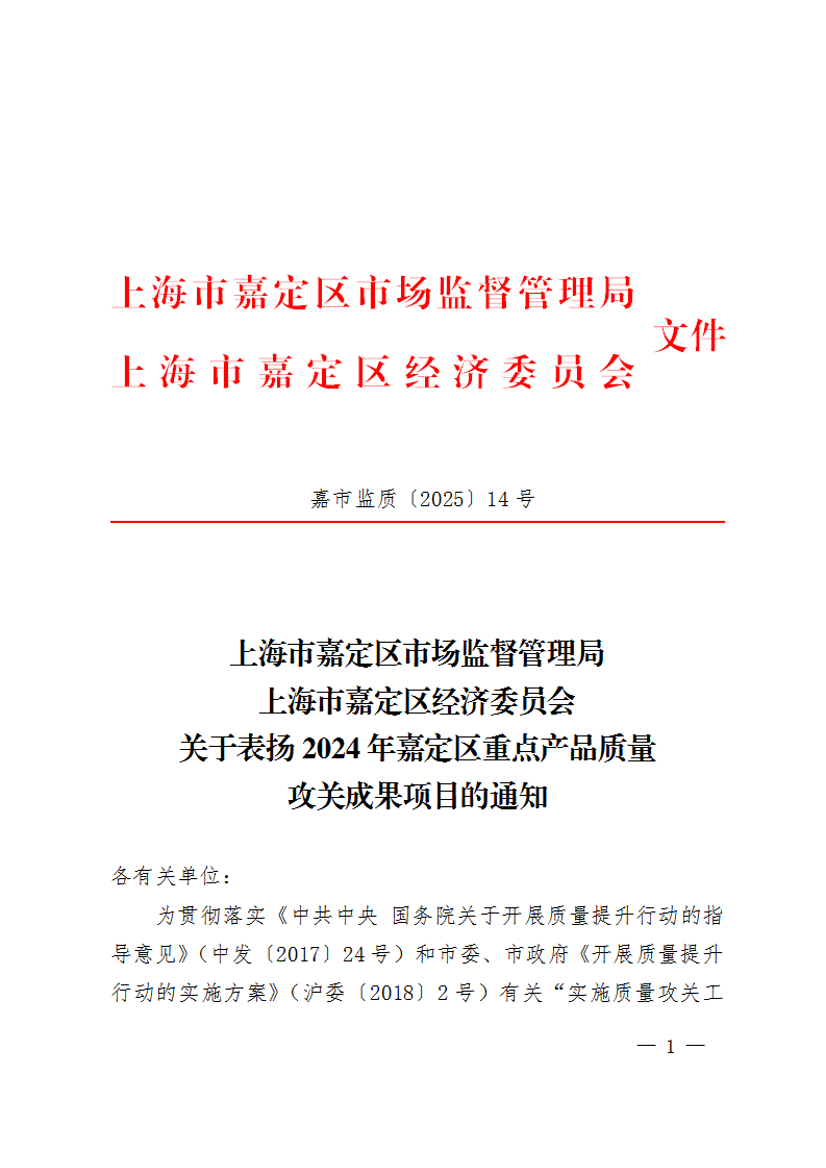 ??上海市嘉定區(qū)市場(chǎng)監(jiān)督管理局 上海市嘉定區(qū)經(jīng)濟(jì)委員會(huì)關(guān)于表?yè)P(yáng)2024年嘉定區(qū)重點(diǎn)產(chǎn)品質(zhì)量攻關(guān)成果項(xiàng)目的通知.pdf