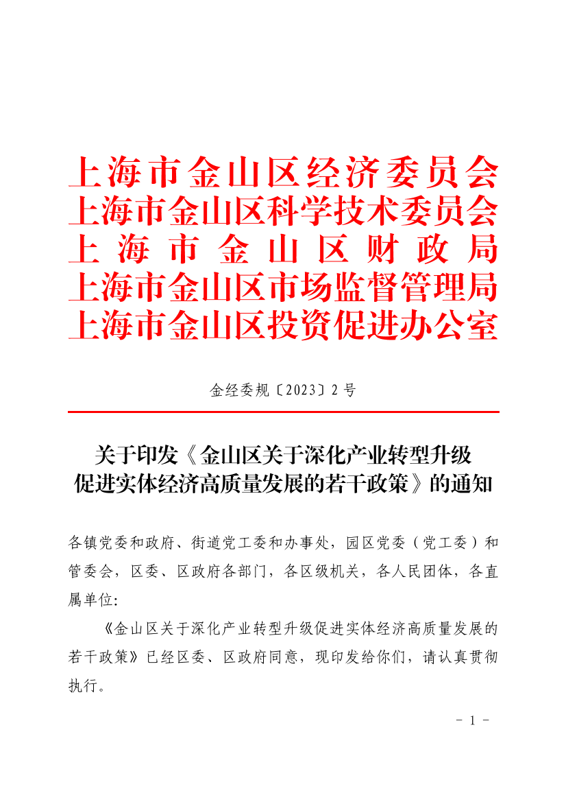 金山區(qū)關于深化產業(yè)轉型升級促進實體經濟高質量發(fā)展的若干政策