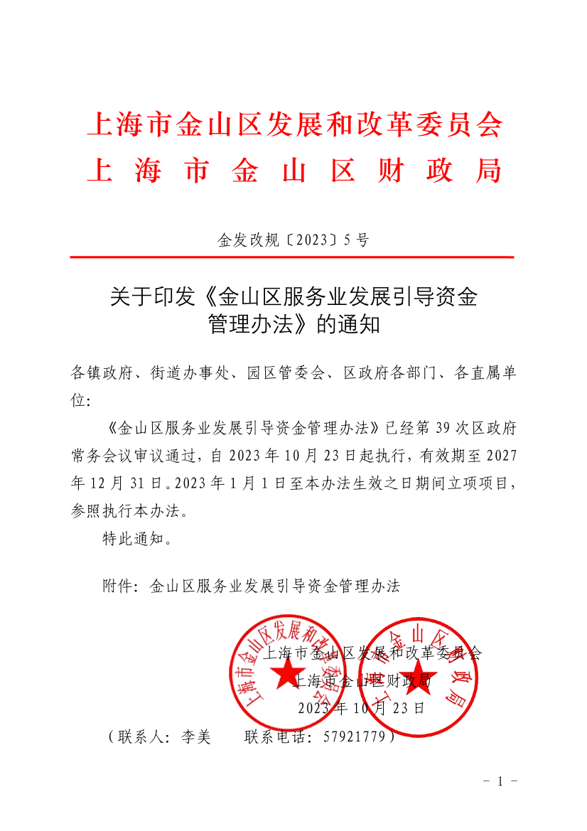 《金山區(qū)服務(wù)業(yè)發(fā)展引導(dǎo)資金管理辦法》已經(jīng)第39次區(qū)政府常務(wù)會議審議通過,自2023年10月23日起執(zhí)行,有效期至2027年12月31日。2023年1月1日至本辦法生效之日期間立項項目,參照執(zhí)行本辦法。